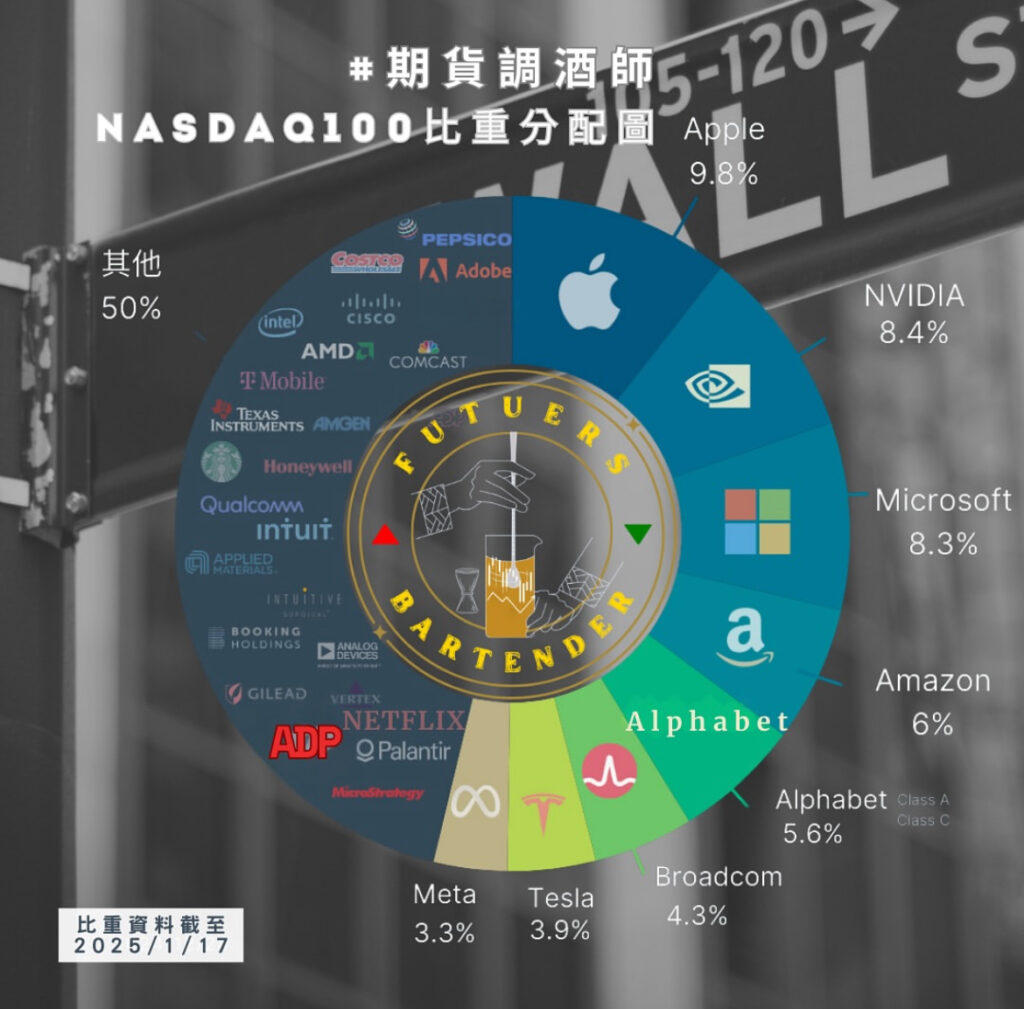 那斯達克指數主要由蘋果、微軟、亞馬遜、英偉達、Meta等大型科技公司組成,因此期貨價格波動通常跟科技產業趨勢息息相關。
